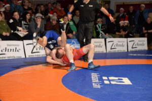 Der Kampf insgesamt war denn auch ziemlich einseitig. Nach den Überlegenheitssiegen von Kiril Stepanov über Marvin Kürz (57 Kg, G) und Chima Chuba über Ralph Moser (130 Kg, F) folgten drei Punktsiege für die RG Lahr. Felix Himmelsbach (61 Kg, F) forderte Maxim Miller alles ab, um zu seinem 2:10 Erfolg zu kommen. Auch Elias Griesbaum (98 Kg, G) lies gegen Calcin Keil nur einen 0:8 Punktesieg zu. Eine umkämpfte Begegnung gab es auch in der Klassse bis 66 Kg, G. Am Ende ging Eugen Schell als deutlicher 0:10 Punktesieger über Andreas Ams von der Matte. Damit führten die Gäste zur Halbzeit mit 0:17 Punkten.