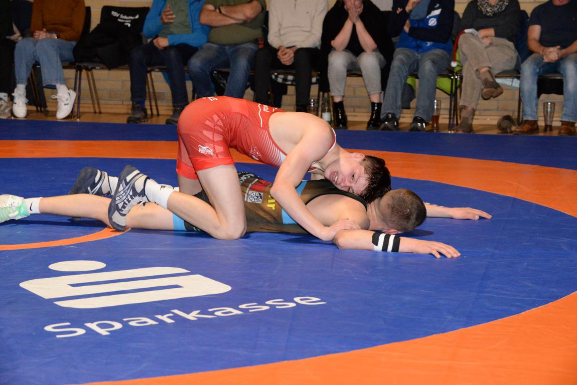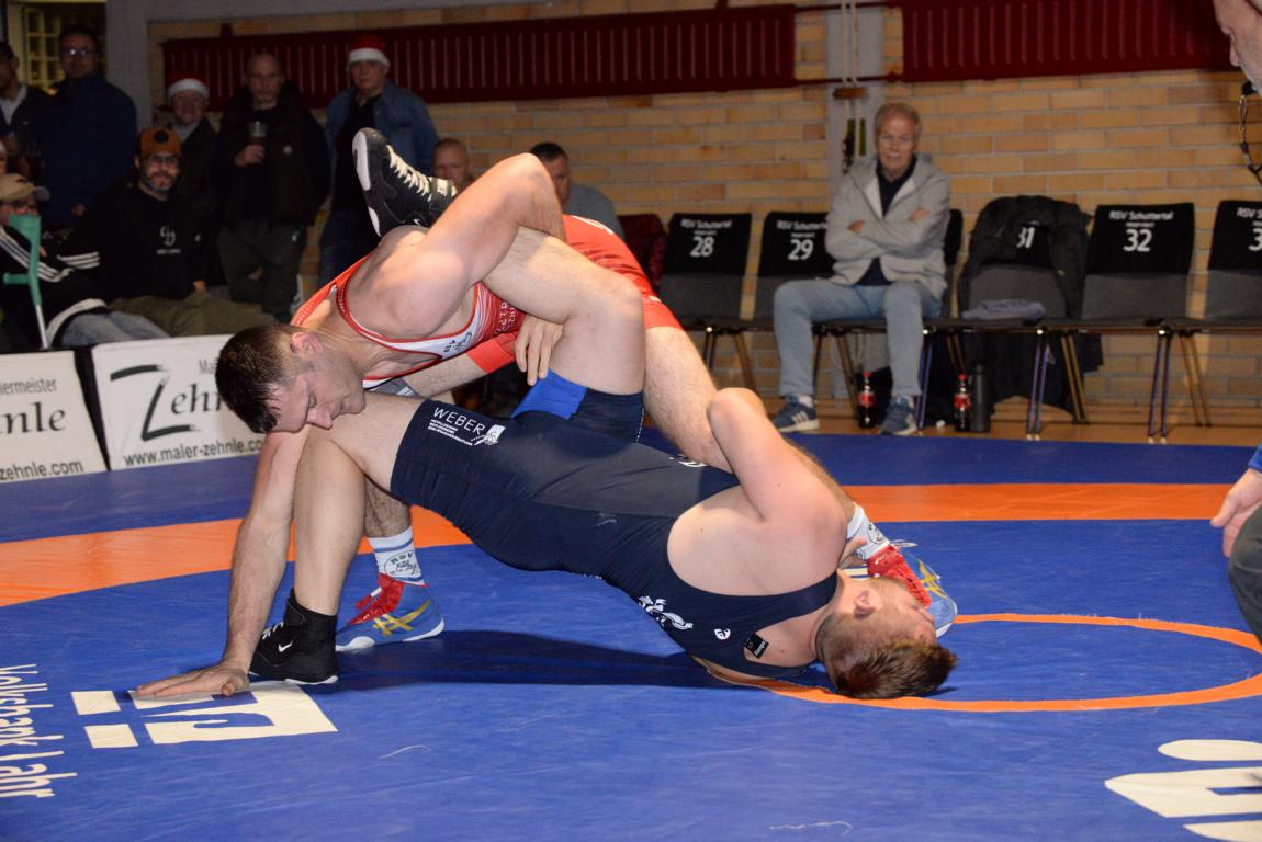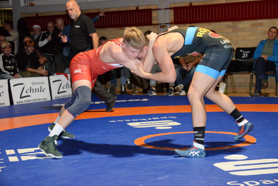 Diese Siegesserie setzte Thomas Gebhardt dann fort. Bennet Chance und verlor überhöht nach Punkten. Den ersten RSV-Erfolg erkämpfte Luca Munz (71 Kg, F). Er ließ von Beginn an keine Zweifel aufkommen, wer als Sieger die Matte verlassen würde. Er siegte durch technische Überlegenheit gegen Mike Köln. Neben der Enttäuschung durch die vielen Ausfälle, gab es eine weitere in der Klasse bis 80 Kg, G. In einem erbittert geführten Kampf führte Tomi Hinoveanu bis wenige Sekunden vor Schluss mit 2:0 Punkten gegen Naim Bolaky-Meite als diesem noch ein Angriff gelang mit dem er die nötigen Punkte für seinen 2:4 Sieg erreichte. Leichtes Spiel hatte Luan Lauer (75 Kg, G) gegen Lukas Herbertshagen. Sein Überlegenheitssieg war ungefährdet. Der Freistilspezialist Nikolay Kiryakov sicherte seinem Team zum Abschluss noch einen Überlegenheitssieg über Tom Himmelsbach.