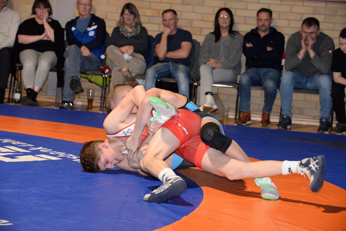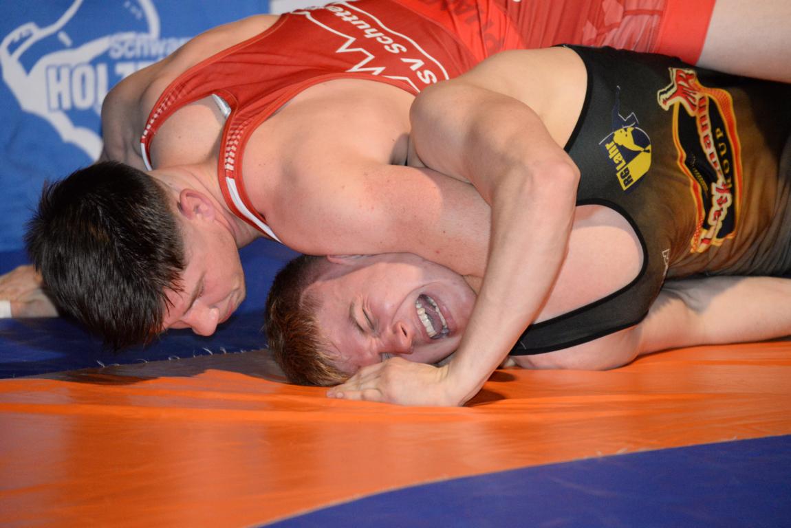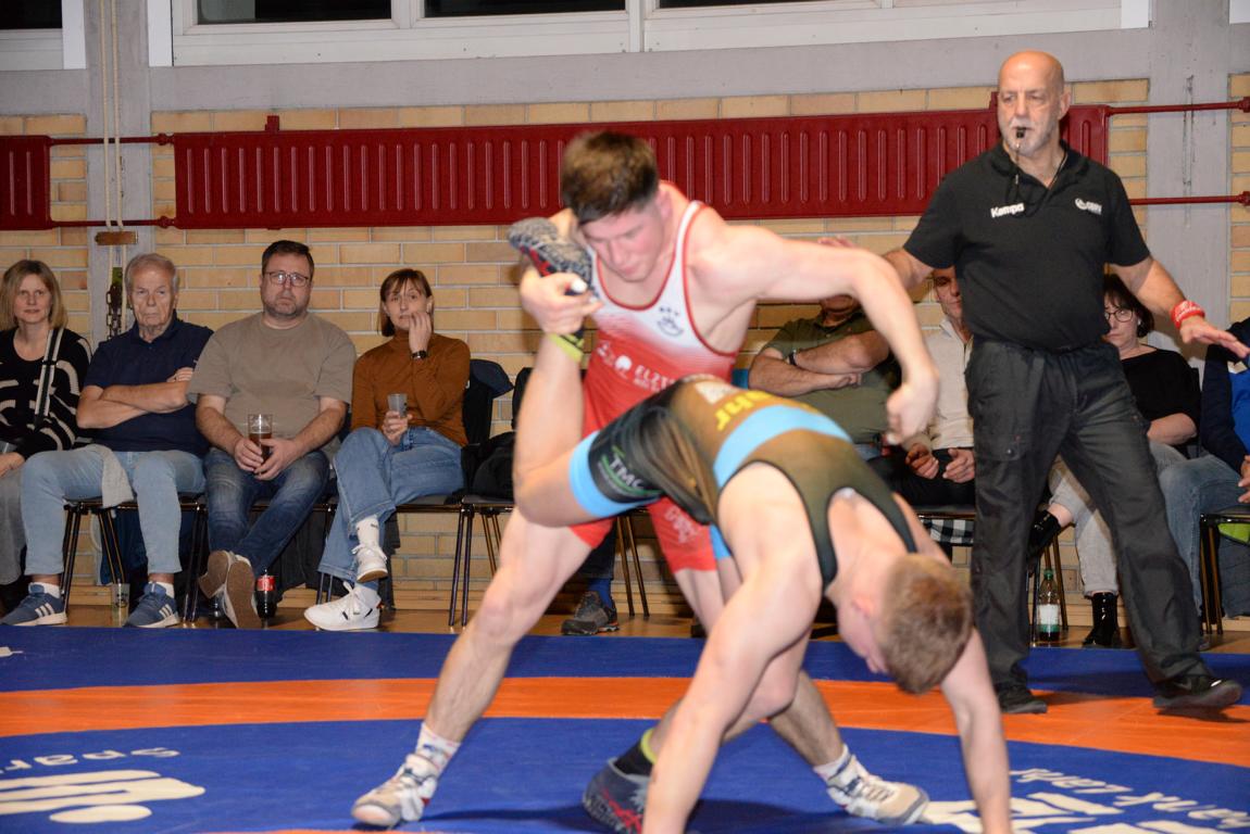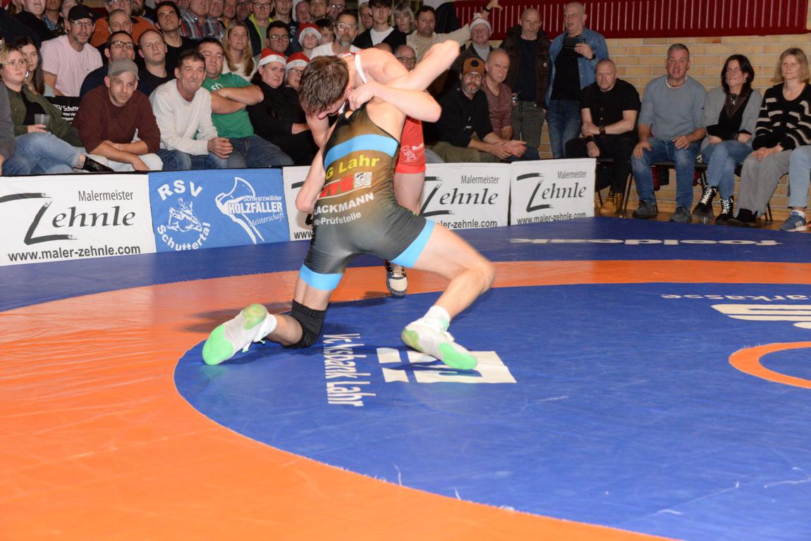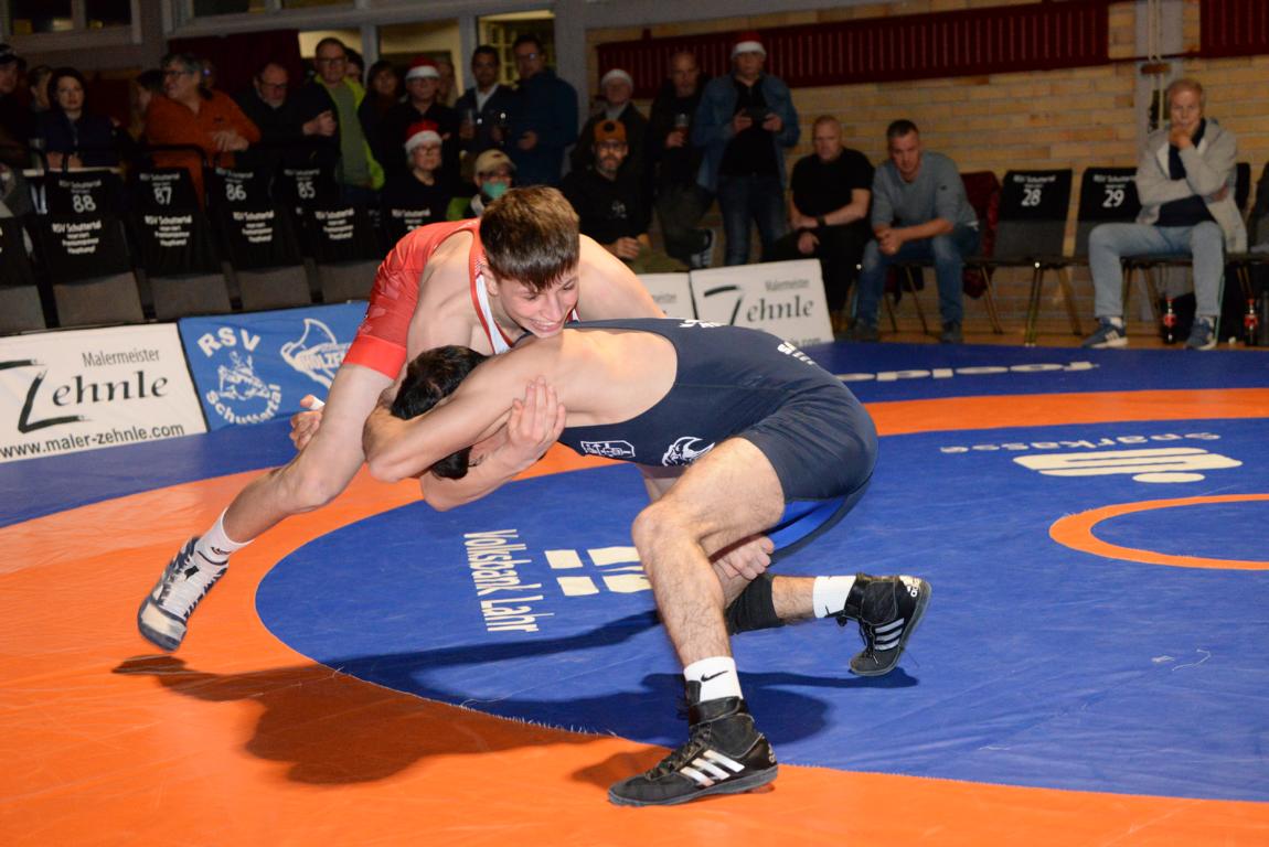 Der Kampf insgesamt war denn auch ziemlich einseitig. Nach den Überlegenheitssiegen von Kiril Stepanov über Marvin Kürz (57 Kg, G) und Chima Chuba über Ralph Moser (130 Kg, F) folgten drei Punktsiege für die RG Lahr. Felix Himmelsbach (61 Kg, F) forderte Maxim Miller alles ab, um zu seinem 2:10 Erfolg zu kommen. Auch Elias Griesbaum (98 Kg, G) lies gegen Calcin Keil nur einen 0:8 Punktesieg zu. Eine umkämpfte Begegnung gab es auch in der Klassse bis 66 Kg, G. Am Ende ging Eugen Schell als deutlicher 0:10 Punktesieger über Andreas Ams von der Matte. Damit führten die Gäste zur Halbzeit mit 0:17 Punkten.