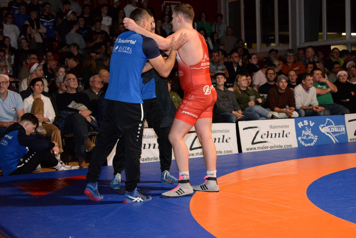 Ausgerechnet zum Schuttertalderby konnte der RSV kein regionalligataugliches Team in der vollbesetzten Festhalle auf die Matte schicken. In den letzten Tagen und auch noch am Kampftag selbst wurde die Liste der Ausfälle immer länger. Die Trainer hatten damit alle Mühe, überhaupt ein komplettes Team zu formieren. Die eingesetzten Athleten gaben trotzdem ihr Bestes, waren aber insgesamt einfach nicht in der Lage, der hochmotivierten Gästestaffel der RG Lahr ernsthaften Widerstand zu leisten. Für den Klassenverbleib war diese Begegnung für den RSV Schuttertal praktisch bedeutungslos, denn es steht nunmehr ziemlich sicher fest, dass es drei Absteiger geben wird und der RSV das Blatt auch bei einem Sieg nicht mehr entscheidend zu seinen Gunsten hätte verändern können.