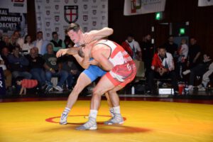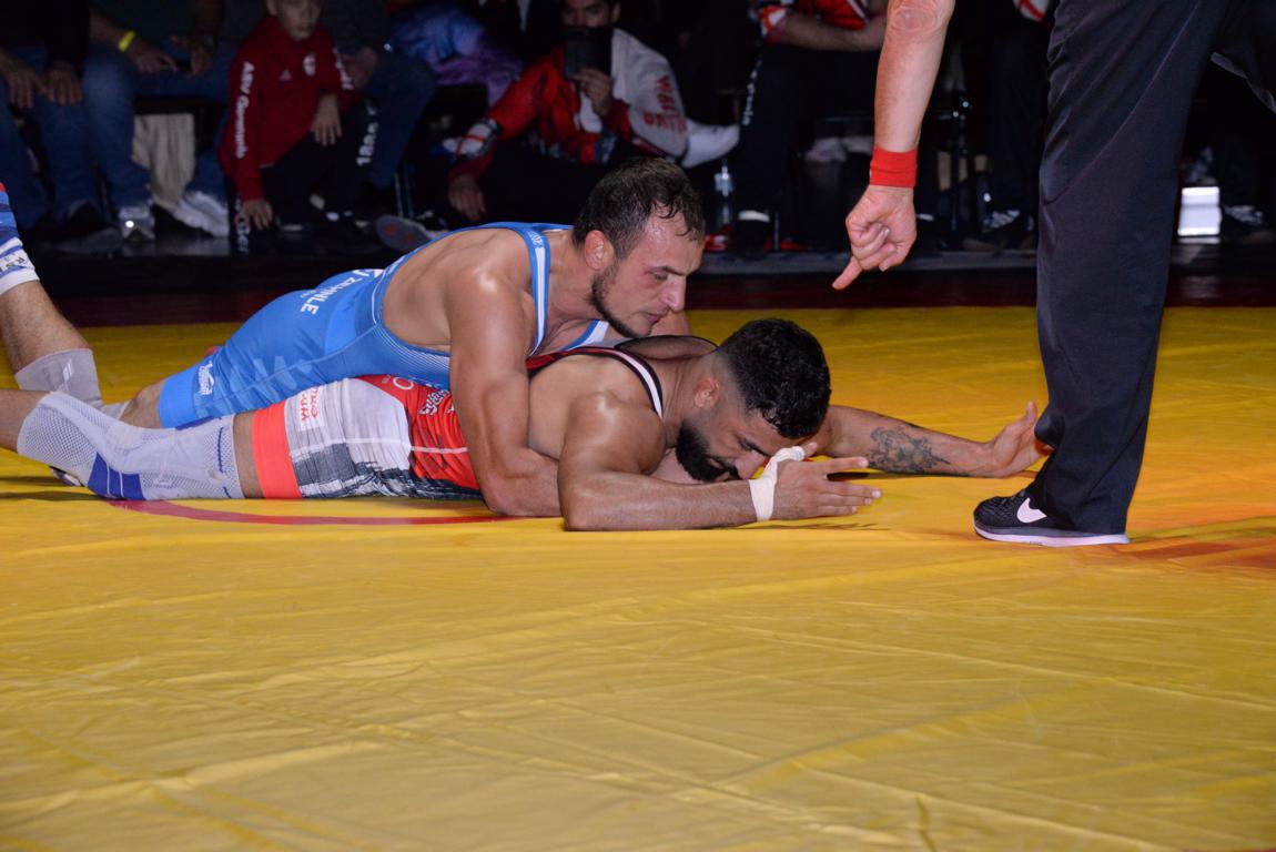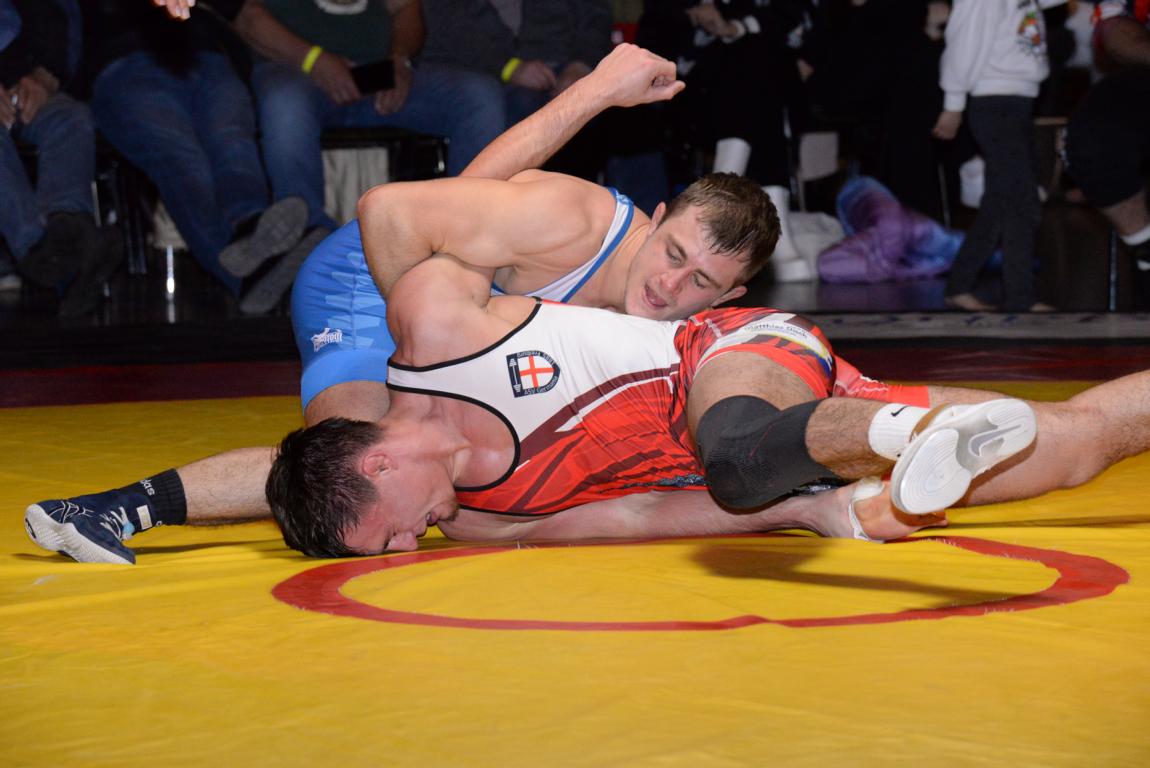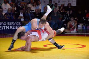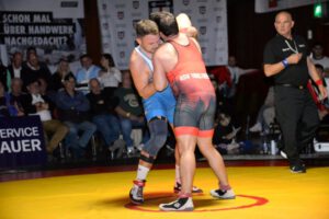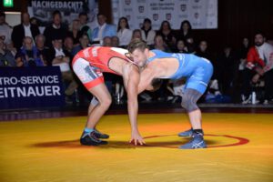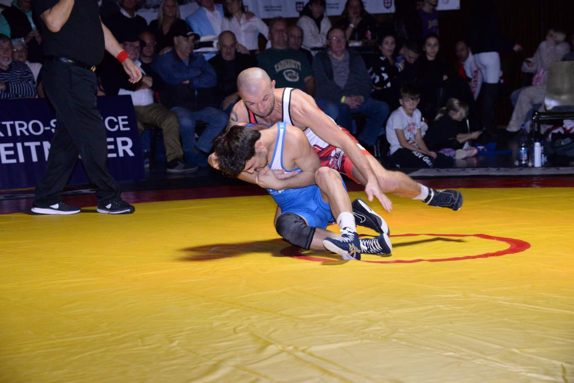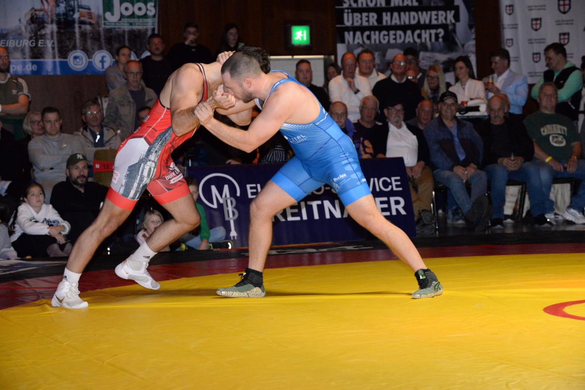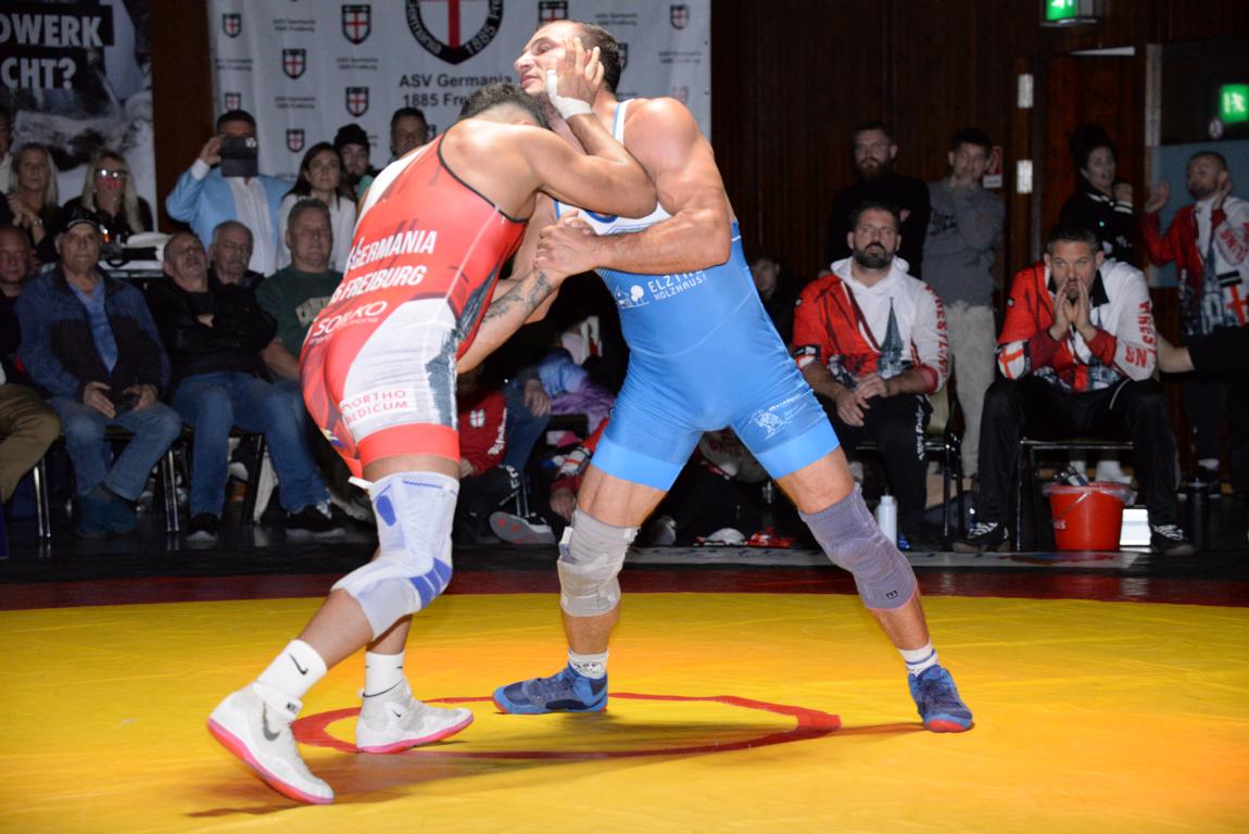 Nach dem kampflosen Sieg von Akaki Osiashvili (57 Kg, F) legte Marcus Mickein (130 Kg, G) gleich nach. Bereits nach einer Minute war er Überlegenheitssieger gegen Johannes Saleh. Einen weiteren Überlegenheitssieg steuerte Tamazi Gugunashvili (61 Kg, G) bei. Nach 1:30 Minuten stand sein Sieg über Ivaylo Dimov fest. Chancenlos war Ralph Moser (98 Kg, F) gegen erfahrenen Freistilspezialisten Michael Kaufmehl. Bis zehn Sekunden vor Schluss hatte es Johannes Hummel (66 Kg, F) geschafft, dem Team einen Mannschaftspunkt zu ergattern, dann erlitt er noch eine folgenschwere Schulterniederlage gegen Alish Alish. Nach der Halbzeit konnte Mykhailo Rudoi (86 Kg, G) den Punktestand für den RSV auf 8:13 erhöhen. Er verpasste es aber, gegen Moritz Bettge einen weiteren technischen Punkt zu erzielen, der dem Team einen wichtigen Zähler eingebracht hätte. Luan Lauer (71 Kg, G) brauchte eine kleine Anlaufzeit um seinen Kontrahenten Andrej Janzen in den Griff zu bekommen. Dann war er jedoch nicht mehr aufzuhalten und wurde nach knapp vier Minuten noch Schultersieger. Luca Munz traf nach seinem Aufrücken in die 80 Kg-Klasse überraschenderweise auf den erfahrenen und körperlich überlegenen Olegk Motsalin, dem er trotz heftiger Gegenwehr deutlich unterlag. Mit Daoud Issayev hatten die Gastgeber noch einen weiteren Top-Athleten, der gegen Pascal Fehrenbacher (75 Kg, F) einen Überlegenheitssieg erzielte. Beim Stande von 16:17 kam es zur finalen Begegnung zwischen Mohammad Damnkhoshk und Tomi Hinoveanu. Der vom Bundesligisten Mainz gekommene Damnkhoshk erwischte gleich den besseren Start und ging in Führung. Danach gelang es Tomi Hinoveanu nicht mehr heranzukommen und musste noch Punkte abgeben. Der 8:3 Punktesieg brachte den Gastgebern noch die wichtigen zwei Zähler zum Gesamtsieg.