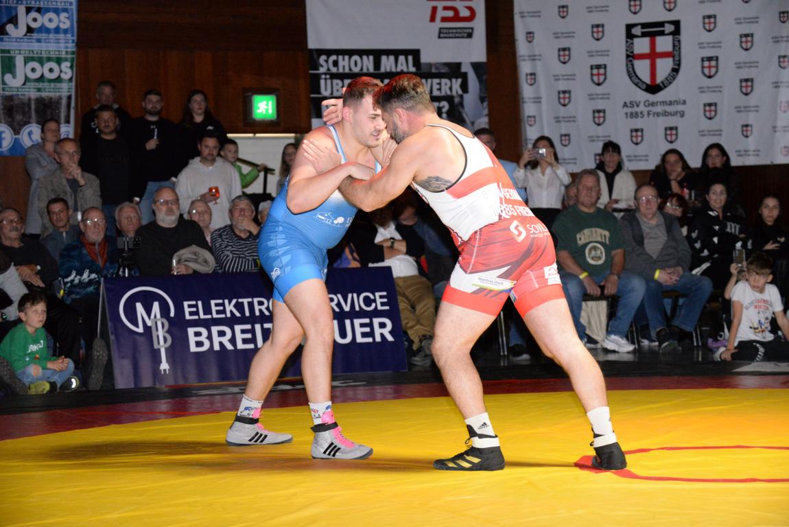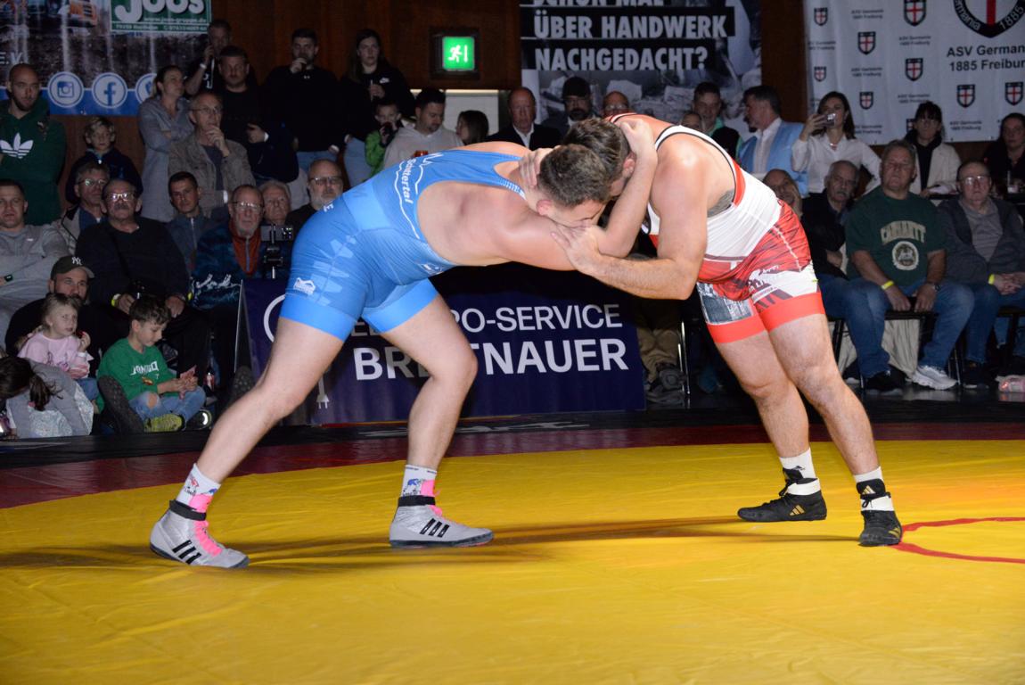 Erneut scheiterte der RSV Schuttertal im letzten Vorrundenkampf gegen den ASV 1885 Freiburg äußerst knapp. In drei Begegnungen war es durchaus möglich, einen Mannschaftspunkt mehr zu erzielen oder einen Punkt für den Gegner zu verhindern. Dieses Manko wog am Ende bei der 18:17 Niederlage schwer und sorgte bei der RSV-Staffel und den Trainern für eine große Enttäuschung, denn auch für die Gastgeber lief nicht alles nach Wunsch. So mussten sie auf ihren gewohnten Schwergewichtler verzichten. Die Umstellungen im RSV-Team wirkten sich nicht zum Vorteil aus, da auch Freiburg die Staffel verändert hatte und hier die besseren Karten in der Hand hielt und dennoch hielt die Zuversicht beim RSV bis zum letzten Kampf, der dann die Niederlage endgültig besiegelte.